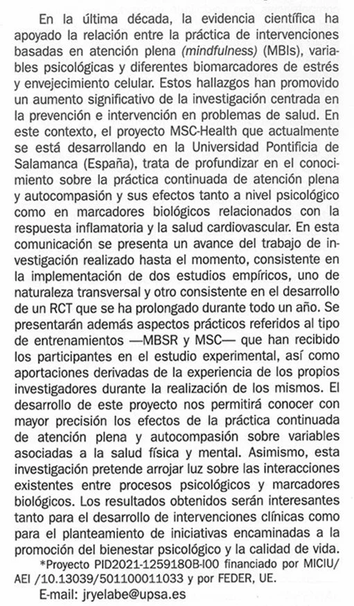 Efectos del programa Mindful Self-Compassion (MSC) sobre el bienestar psicológico y la salud