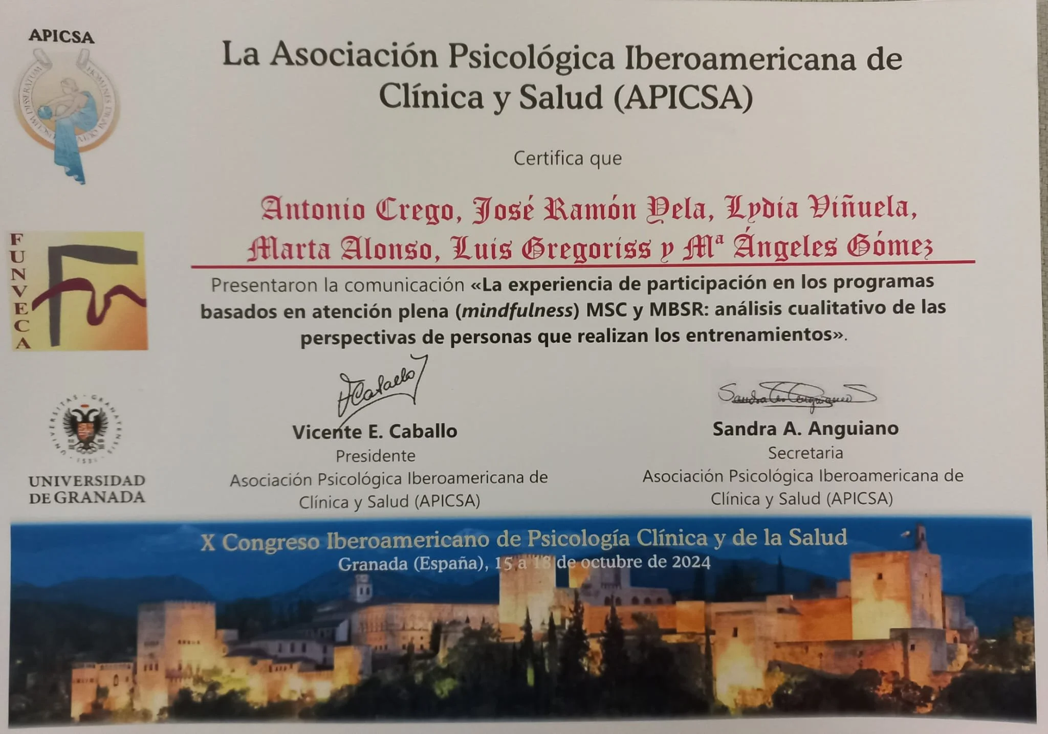 /La Asociación Psicológica Iberoamericana de Clínica y Salud (APICSA) y el grupo de investigación “Avances en psicopatología y terapia de conducta” (APYTEC) de la Universidad de Granada orgnizaron el X Congreso Iberoamericano de Psicología Clínica y de la Salud, que tuvo lugar los días 15 a 18 de octubre de 2024, en la ciudad de Granada.